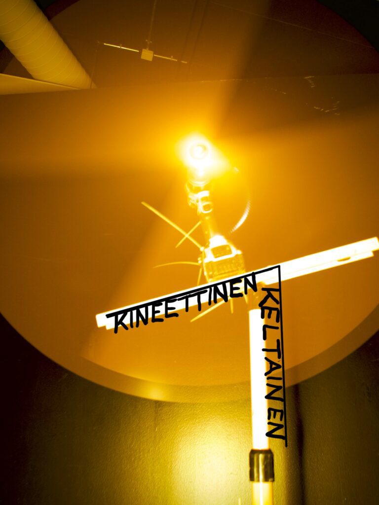 Kineettinen keltainen - en kinetisk installation inspirerad av en före detta spårvagnshall och Åbos ikoniska gula spårvagnar. Och till en tid där den gula färgen var en symbol för fart, positivitet, bekymmerslöshet, framåtanda men samt även fara.